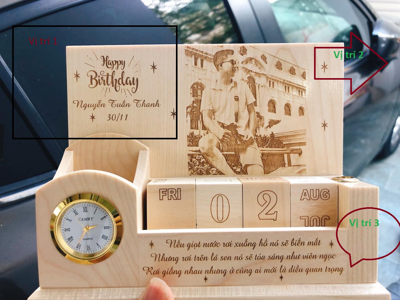 2. Đặt mua sản phẩm lịch gỗ để bàn cá nhân hóa hình ảnh và câu chúc: