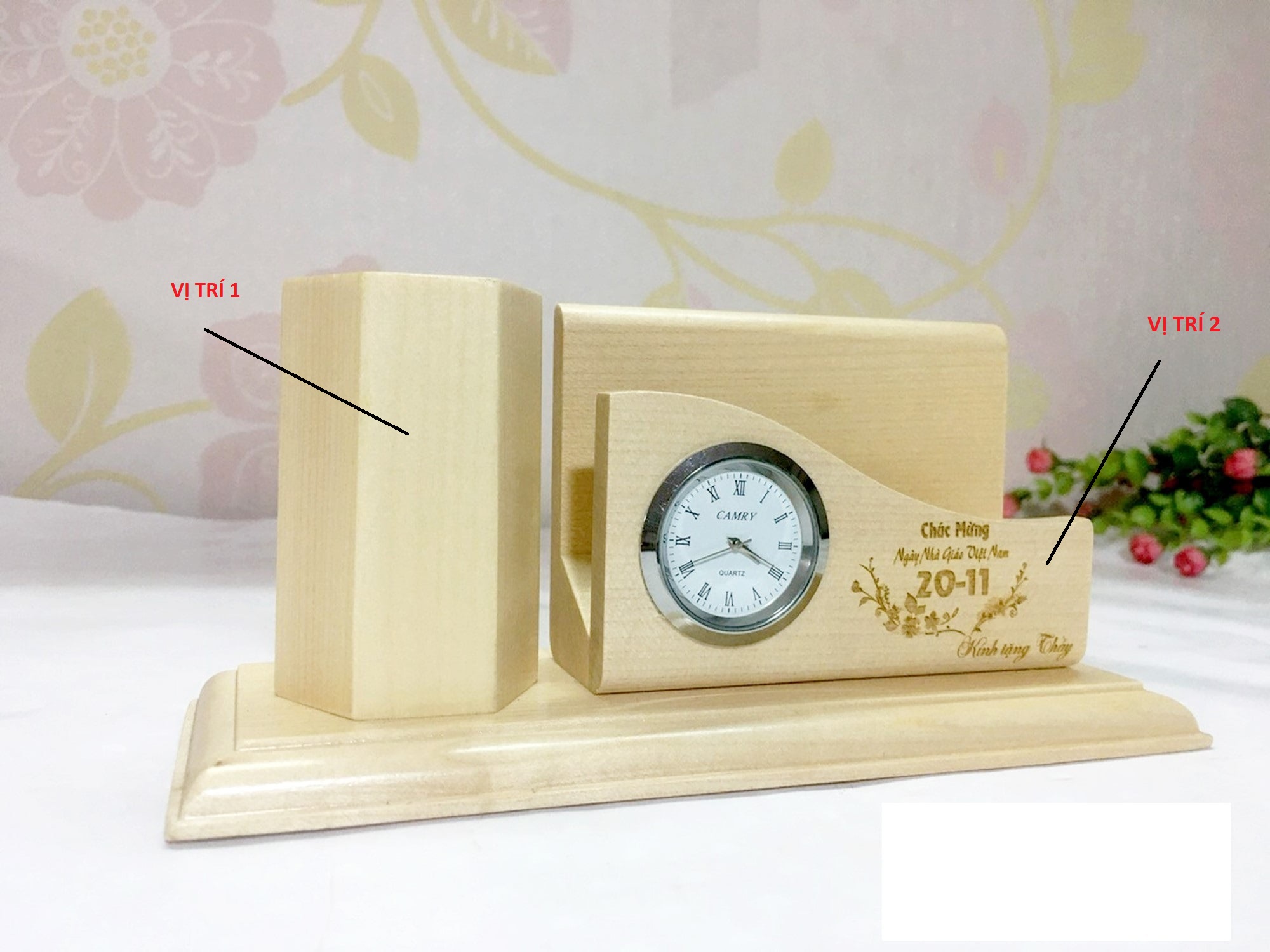 3. Đặt mua đồng hồ gỗ để bàn cao cấp khắc chữ và câu chúc kèm hình ảnh ý nghĩa:
