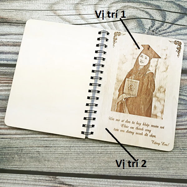 8. Sổ gỗ khắc chân dung và câu chúc theo yêu cầu: