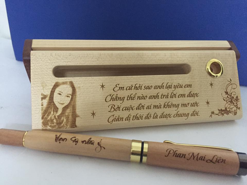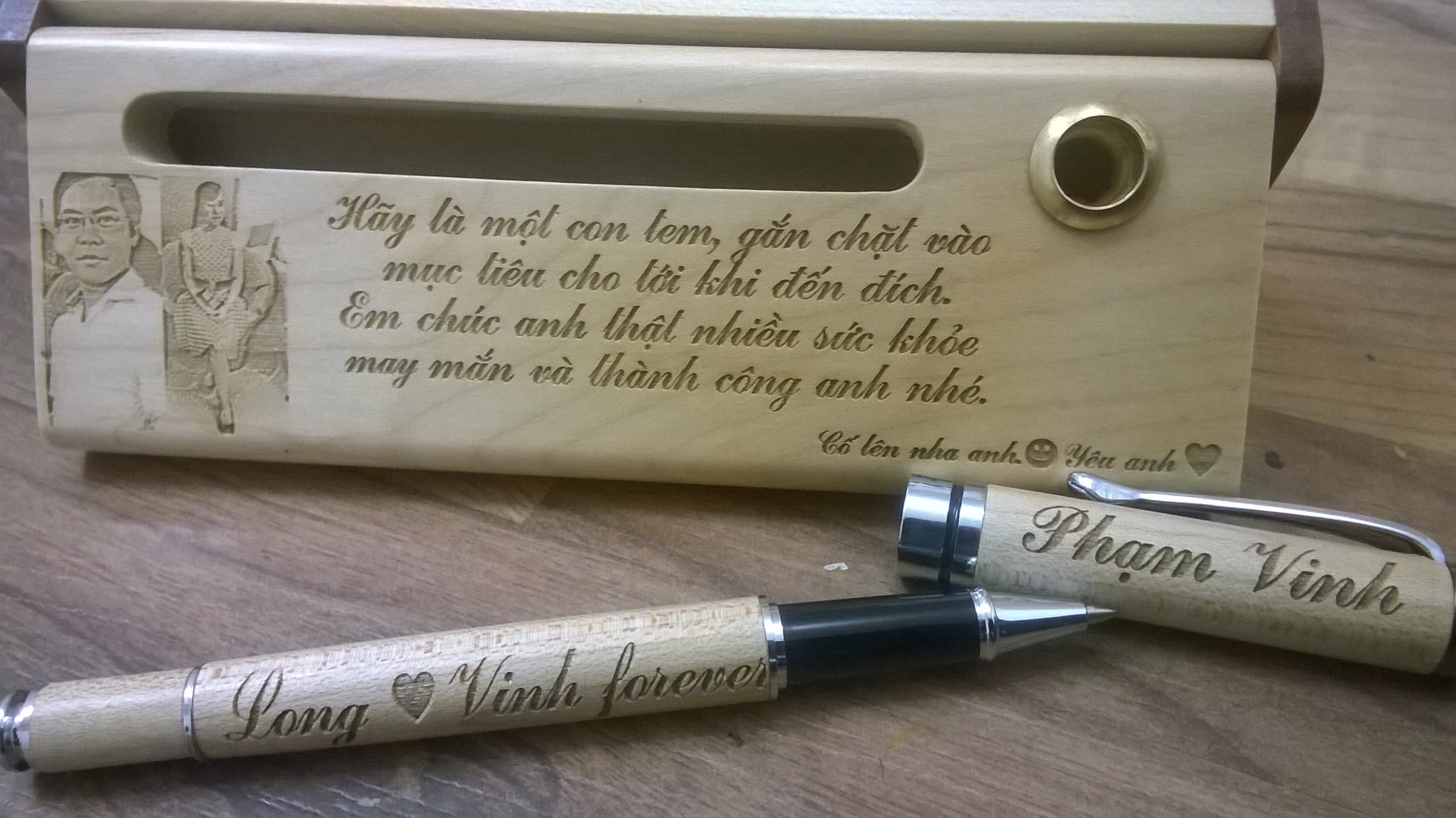 Bút gỗ khắc tên khắc chữ tình yêu theo yêu cầu