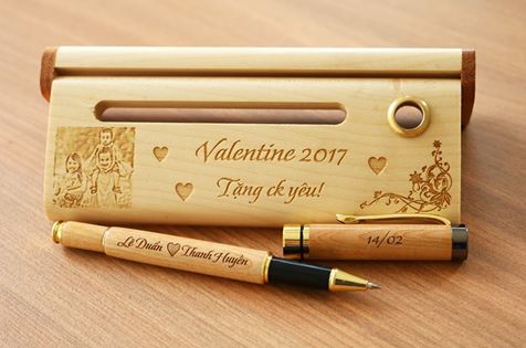 Quà tặng bút gỗ khắc tên valentine ý nghĩa