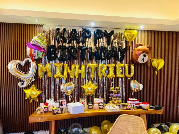 Không gian tiệc sinh nhật của Minh Triệu được Kỳ Duyên trang trí vô cùng dễ thương