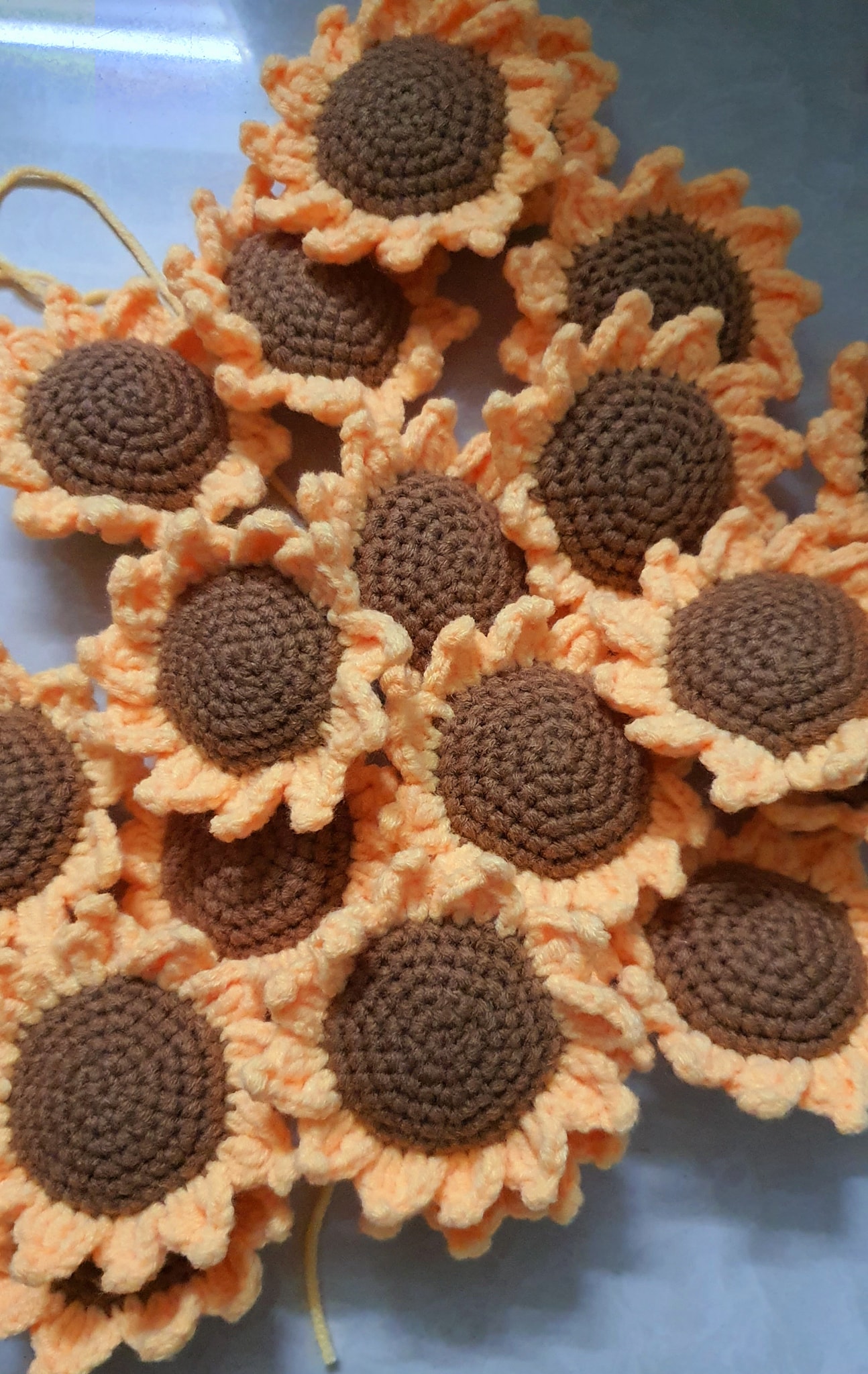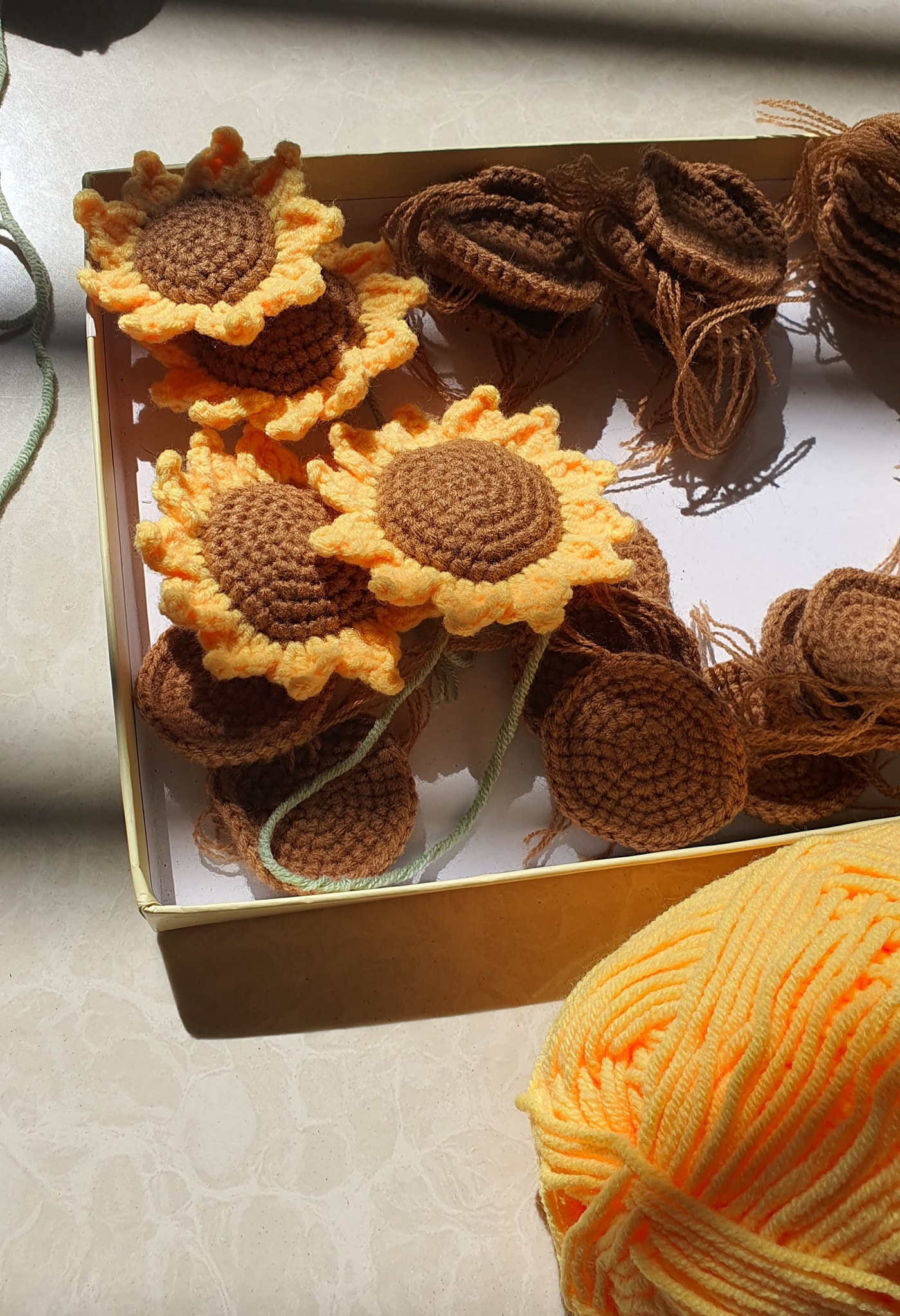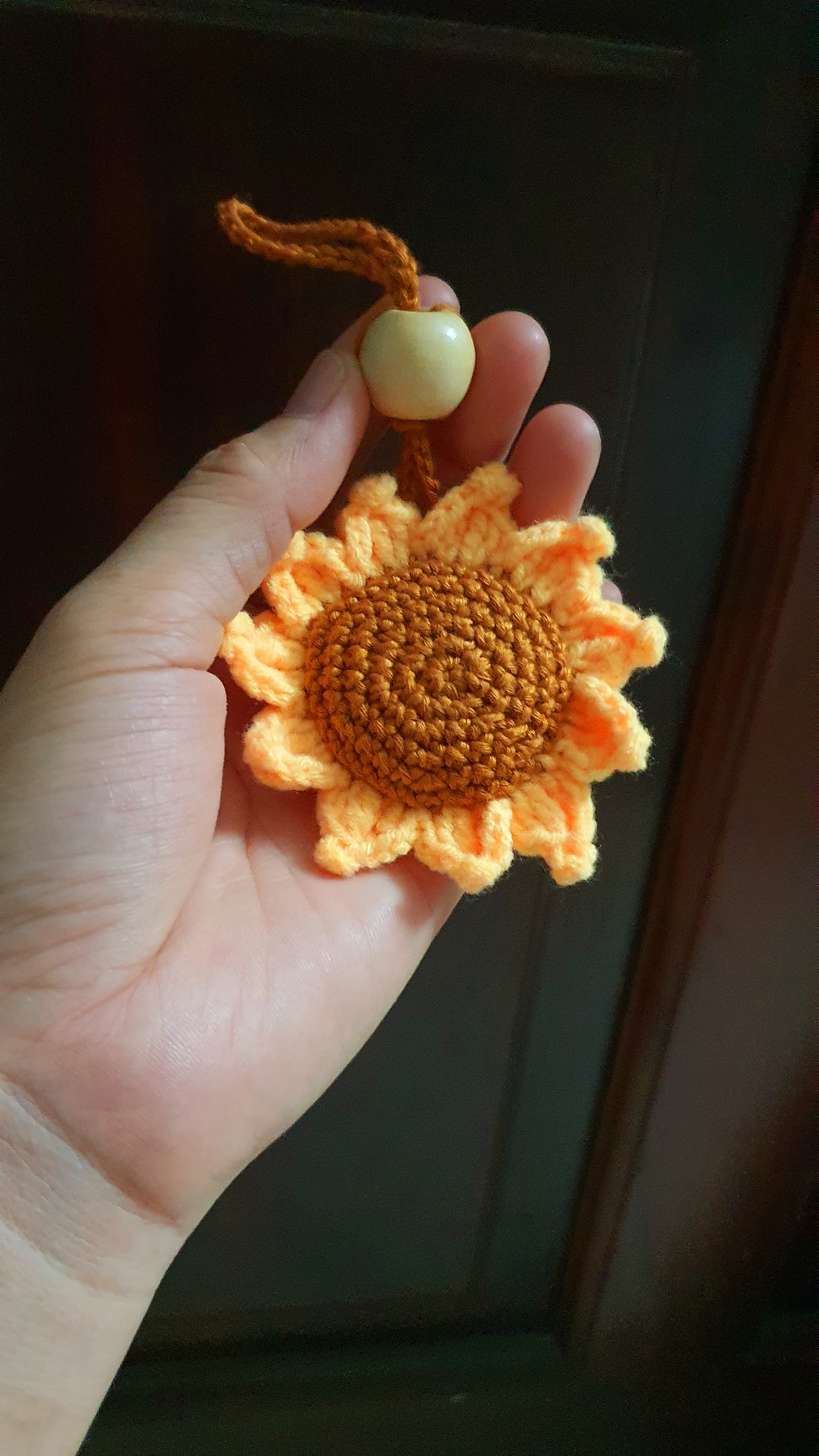 Móc khoá hoa hướng dương bằng len - móc khoá handmade. Đan móc tỉ mỉ từng chi tiết sản phẩm tại Nhà Hoa Hướng Dương.