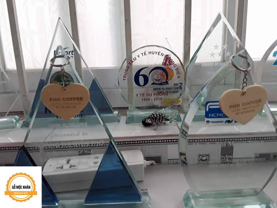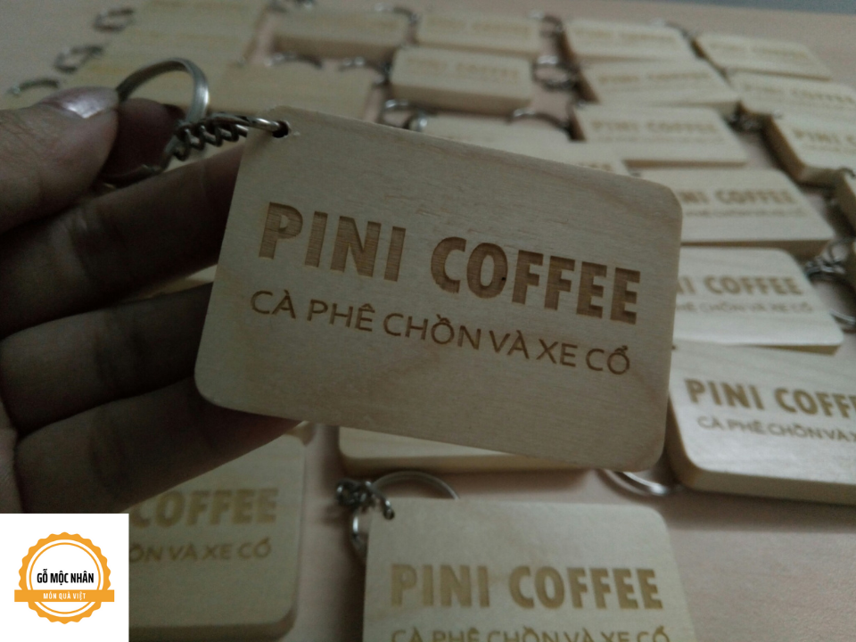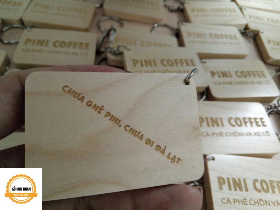 Khách hàng tiêu biểu Pini Coffee Đà Lạt chọn móc khóa gỗ khắc logo và slogan làm quà tặng sự kiện
