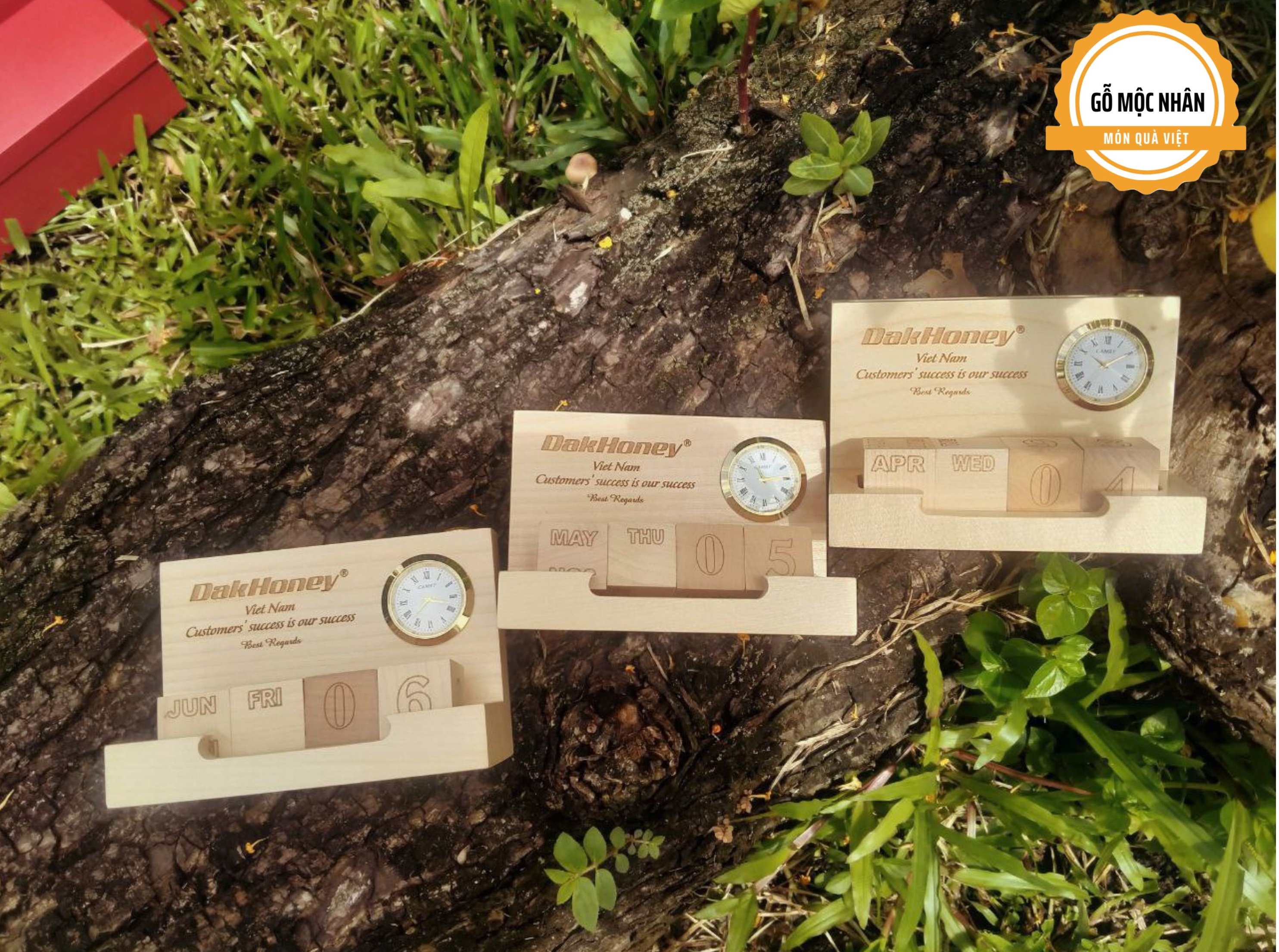 Lịch gỗ để bàn Đa Năng, Quà tặng của Gỗ Mộc Nhân nay vinh hạnh được Cty Dak Honey (Ong Mật Đắk Lắk) chọn làm Quà tặng cho Khách hàng Quốc tế.