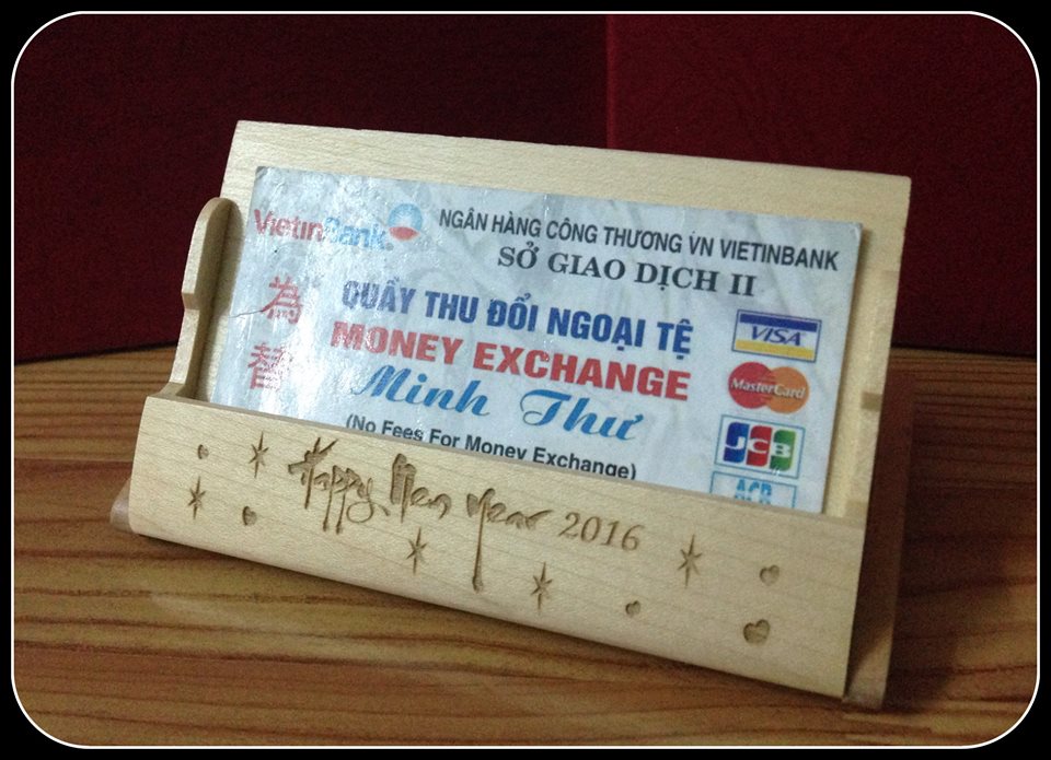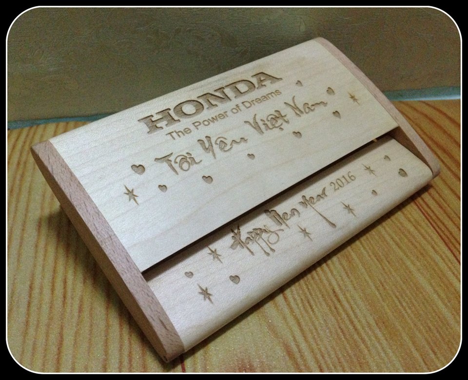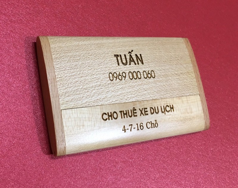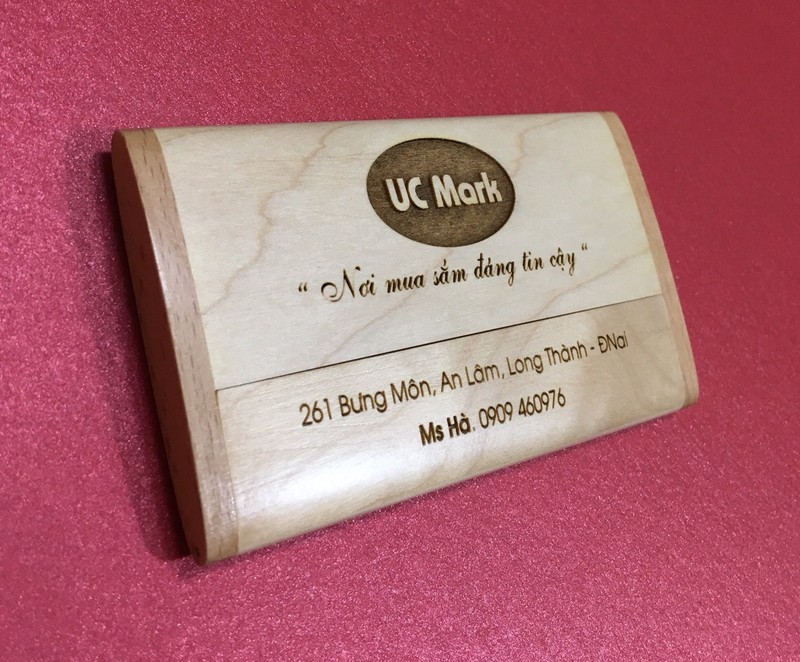 Hộp namecard gỗ vừa nhỏ gọn vừa sang trọng, lại có tính nghệ thuật sẽ giúp người sử dụng tạo ấn tượng riêng đối với khách hàng hay đối tác khi trao đổi danh thiếp. Một hộp namecard bằng gỗ còn còn giúp phong thủy của người sử dụng được phát triển thịnh vượng hơn. Hộp namecard gỗ in/khắc logo theo yêu cầu của khách. Chất liệu gỗ tự nhiên: gỗ thông, gỗ maple (gỗ xoài nhập khẩu) được xử lý kỹ thuật trước khi chế tác.