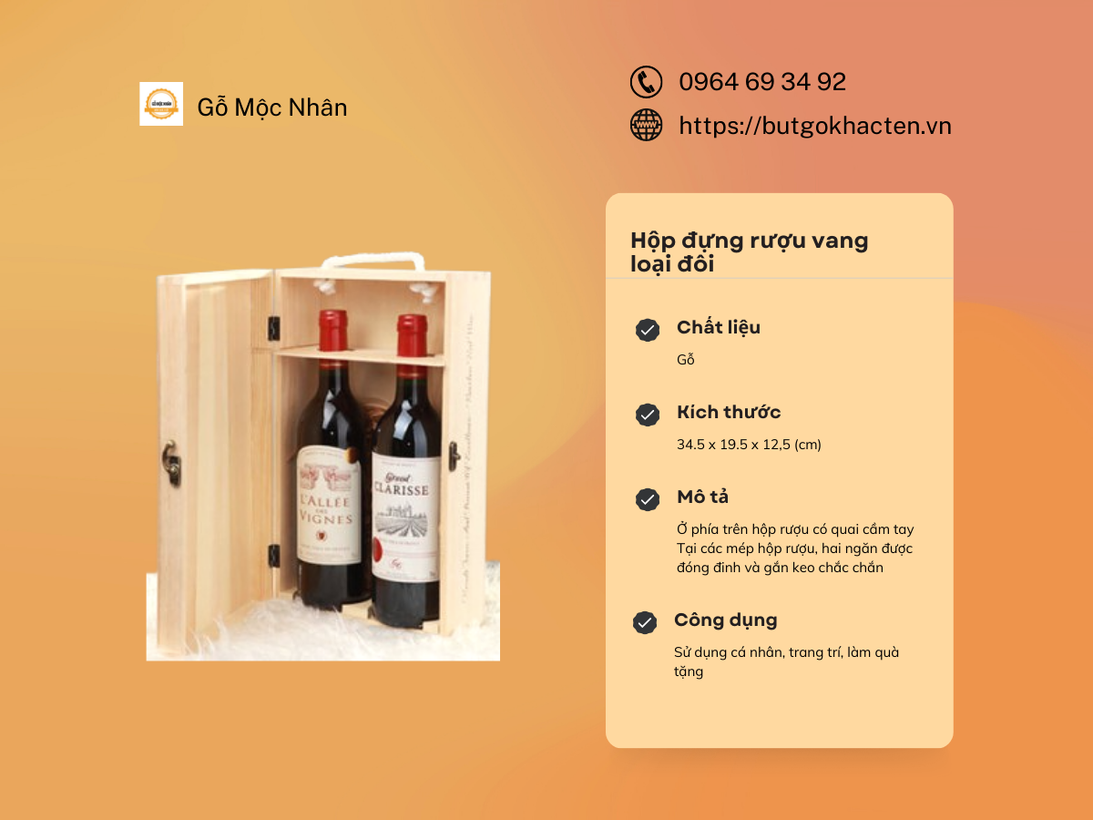 Xem thêm: Hộp Đựng Rượu Vang Bằng Gỗ 1 chai