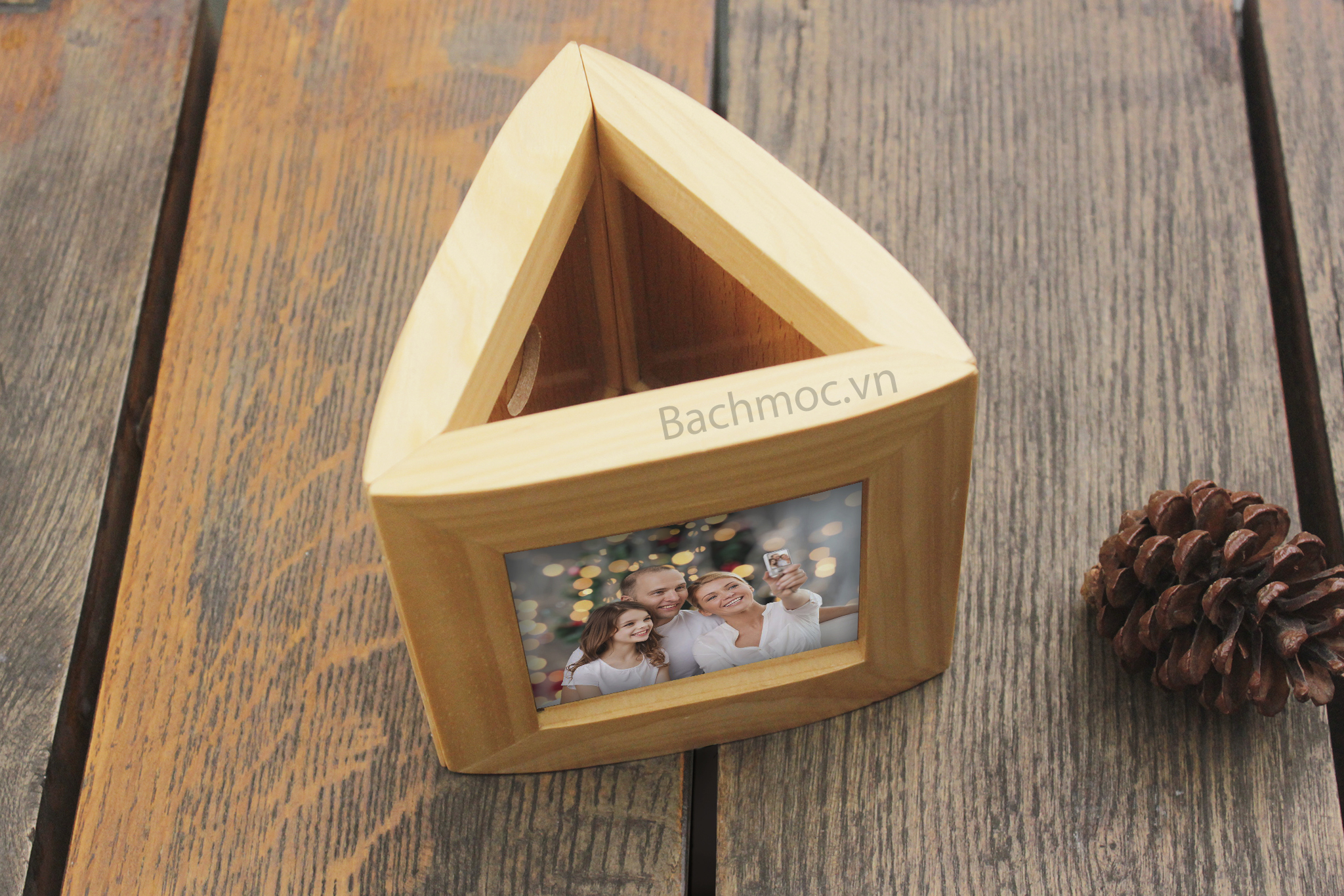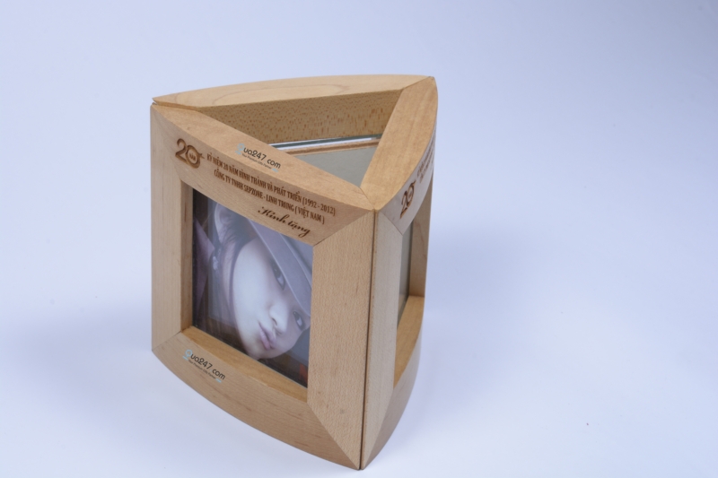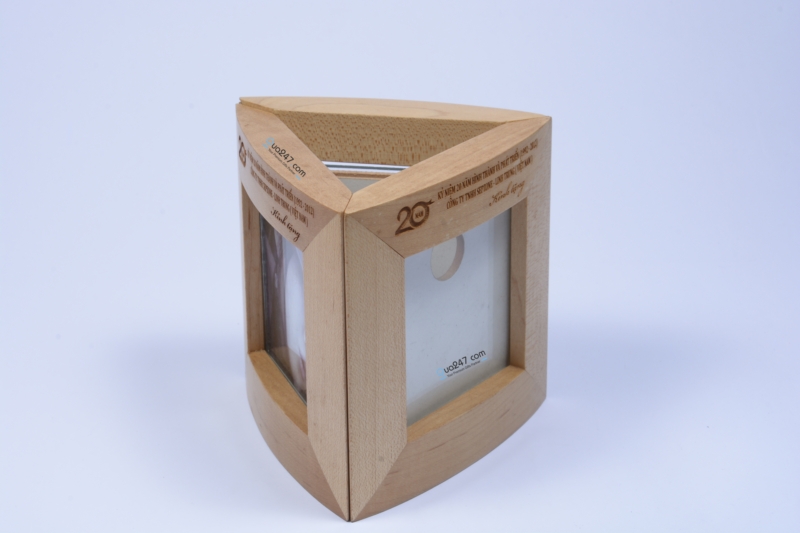 Quy cách sản phẩm Hộp ống bút khung hình đa năng : Ống cắm bút bằng gỗ, Ống bút gỗ khung hình tam giác độc đáo gồm 3 mặt khung hình gỗ maple ghép thành, kích thước mỗi mặt 120*120 mm. Có thể tách thành 3 khung hình độc lập, size hình 75*75 mm.