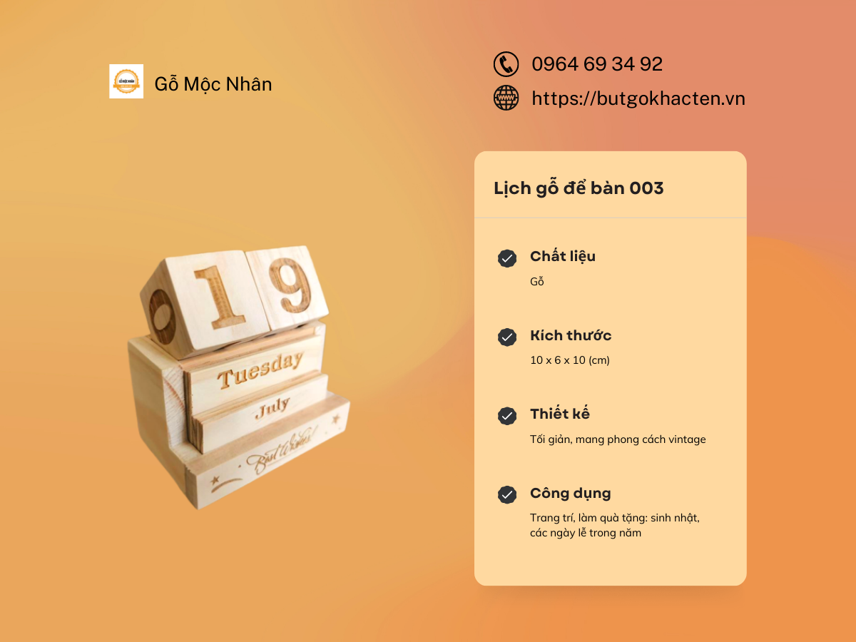 Lịch Gỗ Để Bàn Ấn Tượng