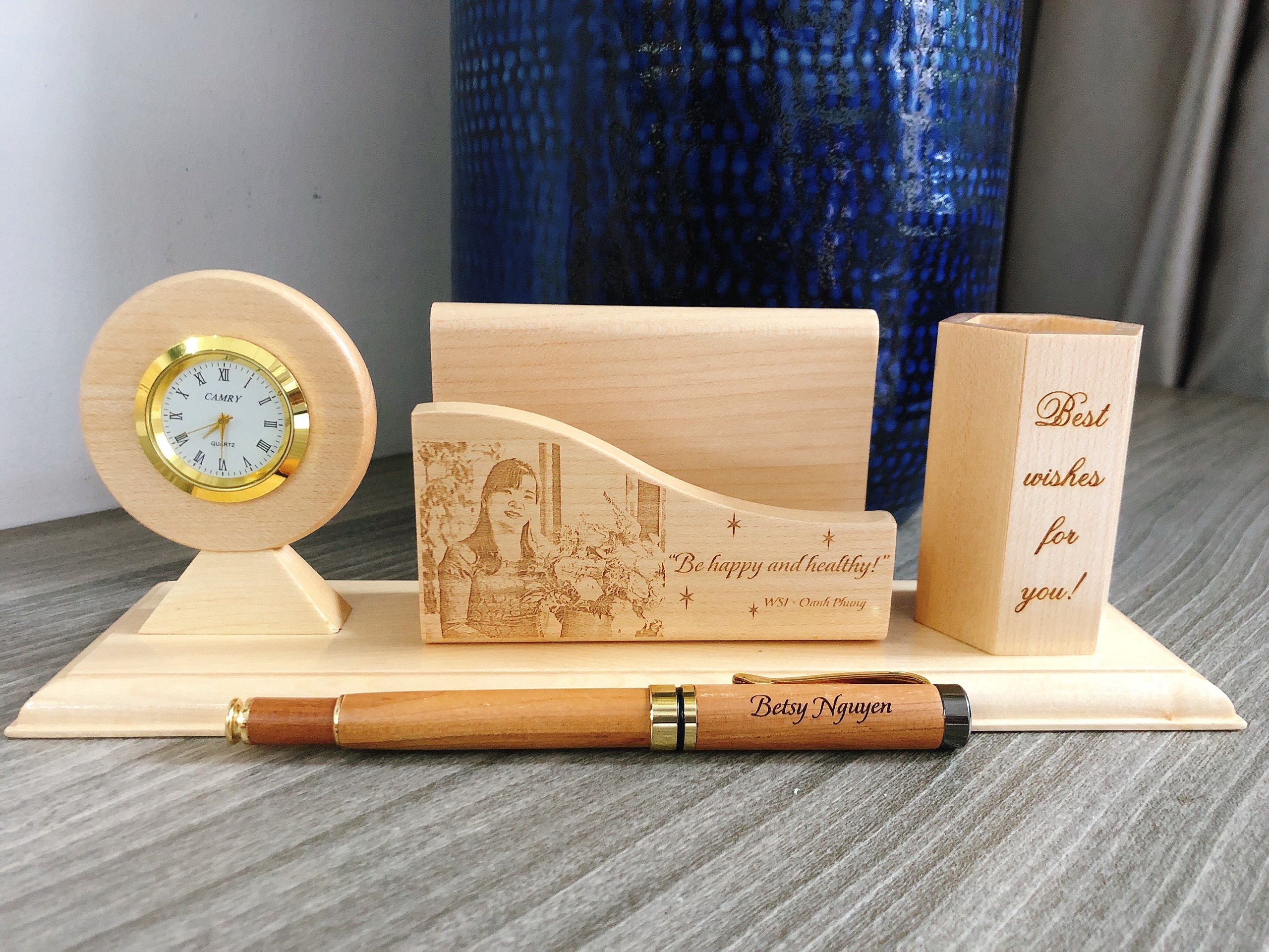 Lịch Gỗ Để Bàn khắc chìm laser tinh xảo theo mọi yêu cầu lên lịch gỗ lấy liền, khắc logo, khắc hoa văn, khắc thư pháp, khắc tên, khắc chữ hoàn toàn miễn phí.