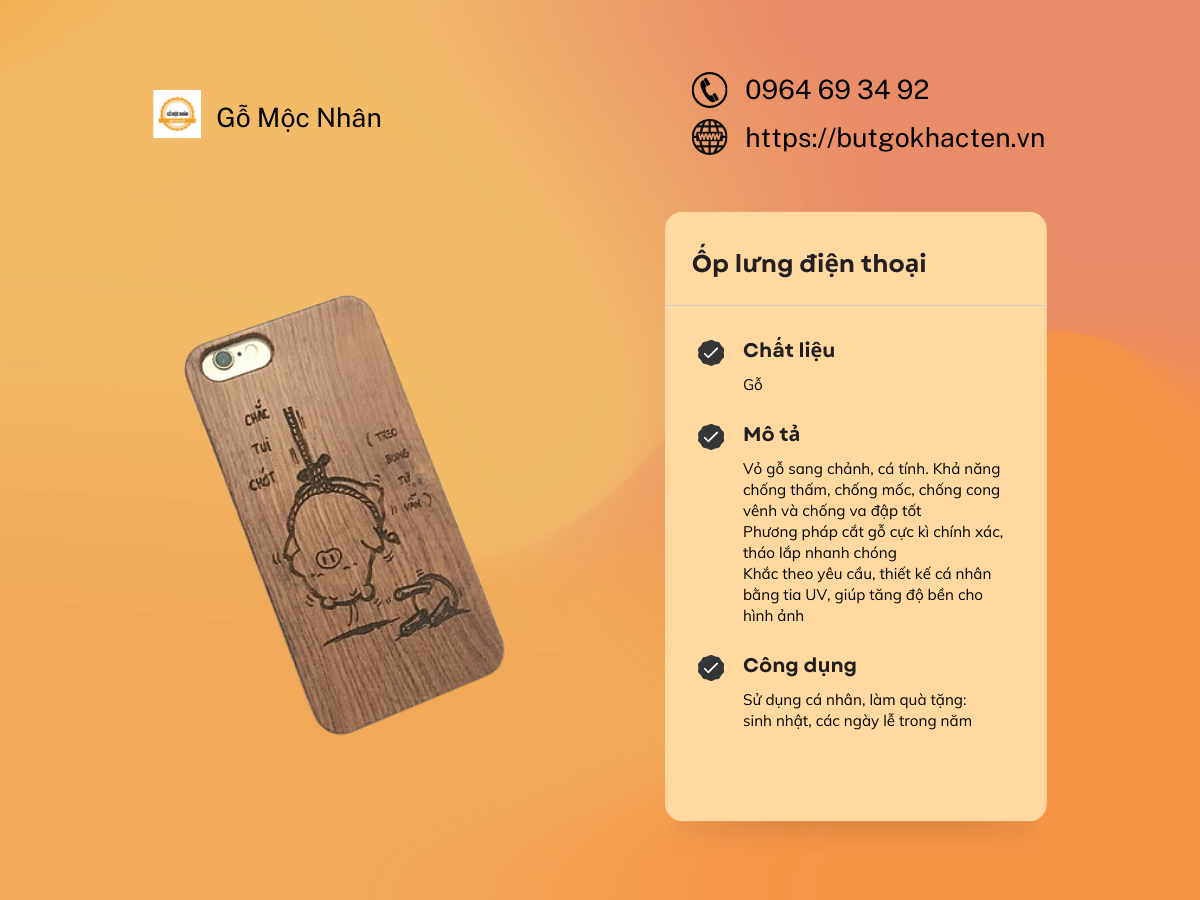 Ốp lưng điện thoại ốp gỗ điêu khắc nhận đặt theo yêu cầu