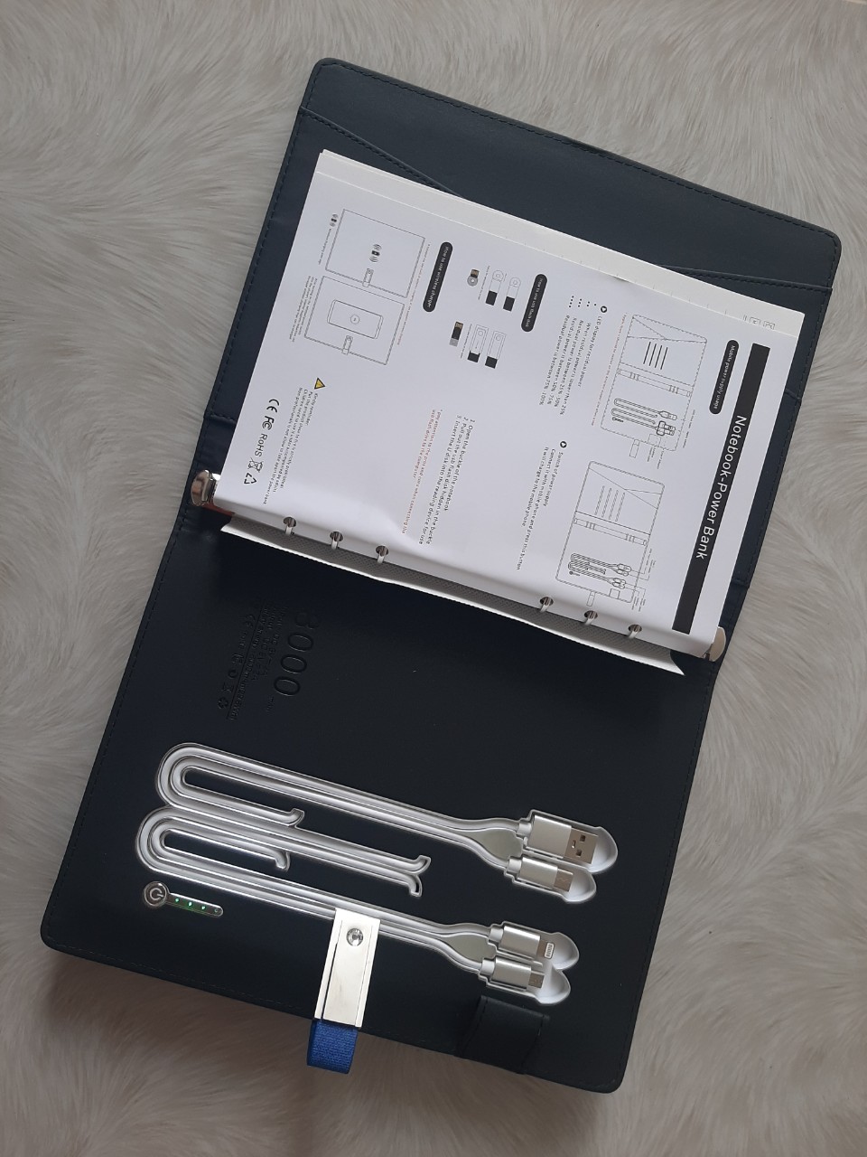 – Cuốn sổ da công nghệ này cực kỳ tiện lợi vì trang bị cục pin sạc dự phòng có dung lượng lên đến 8.000mAh, có thể sạc cho tất cả các loại điện thoại phổ biến hiện nay như Iphone, Android. Sản phẩm còn đi kèm theo chức năng sạc pin không dây vô cùng tiện lợi và độc đáo.