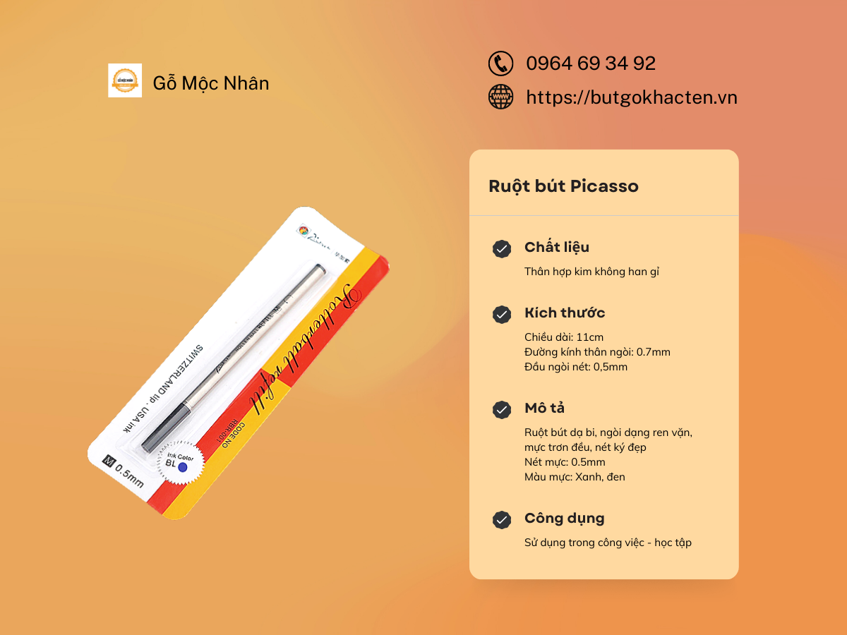 Ruột bút Picasso dùng cho bút dạ bi có 2 màu xanh và màu đen. Thích hợp cho các dòng bút dạ bi picasso