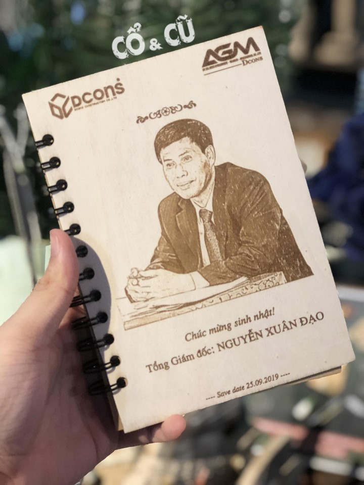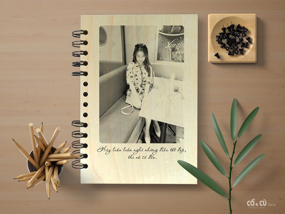 Một sự đột phá trong mẫu sổ tay không giống như những cuốn sổ tay thông thường bìa giấy hay bìa da. Một quyển sổ tay bìa gỗ được khắc lên đó những họa tiết đầy ý nghĩa, ngộ nghĩnh.