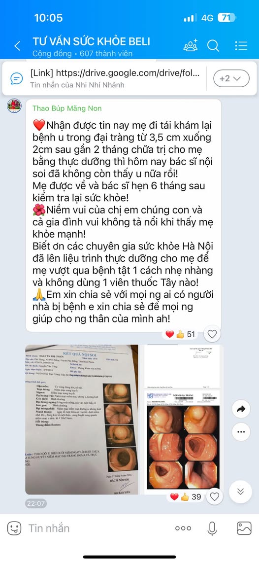 Một bệnh nhân bị u trong đại tràng kích thước 3,5cm sau khi sử dụng enzyme 365 sau gần 2 tháng đi tái khám giảm còn 2cm và điều kì diệu hôm nay đã diễn ra. Bệnh nhân đi tái khám lần nữa bác sĩ đã ko tìm thấy khối u đâu nữa, bệnh nhân ko tin và bắt bác sĩ phải soi cho bằng thấy nhưng sự thật là nó đã tan biến mất sau 3 tháng sử dụng enzyme 365