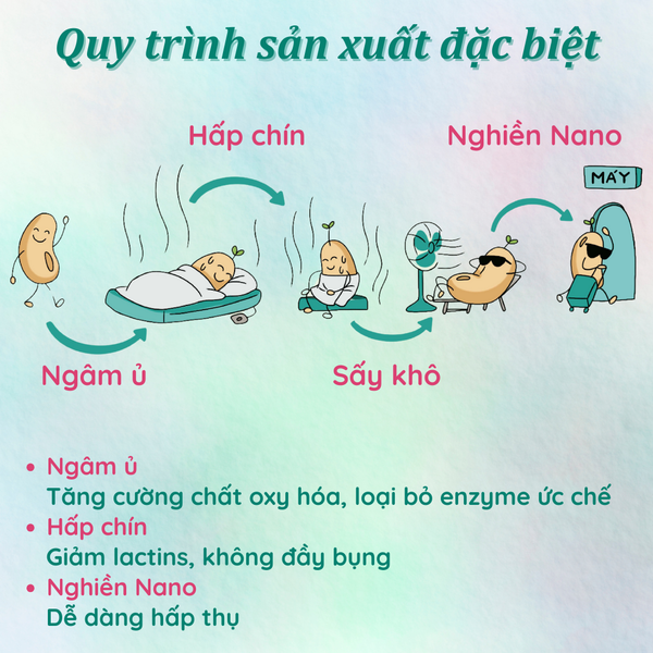 Hấp chín: trước khi sấy khô giúp giảm tối đa Lactins nên Sữa hạt dinh dưỡng Beli trở nên dễ tiêu hóa, không gây đầy bụng như ngũ cốc thông thường.