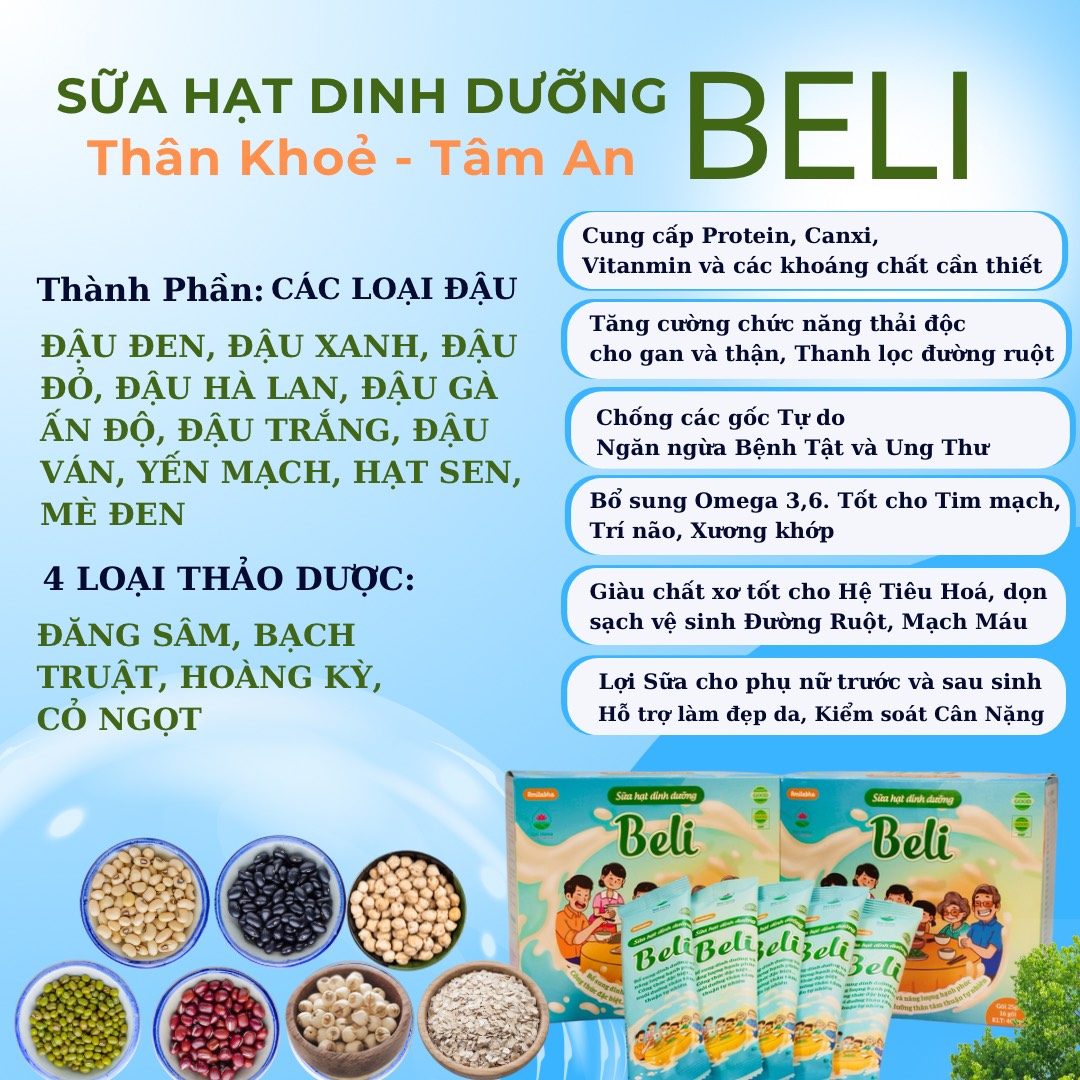Sữa hạt dinh dưỡng Beli, với công thức đặc biệt từ 10 loại hạt và 4 loại thảo dược, không chỉ cung cấp dinh dưỡng toàn diện mà còn góp phần nuôi dưỡng thân tâm theo cách tự nhiên.