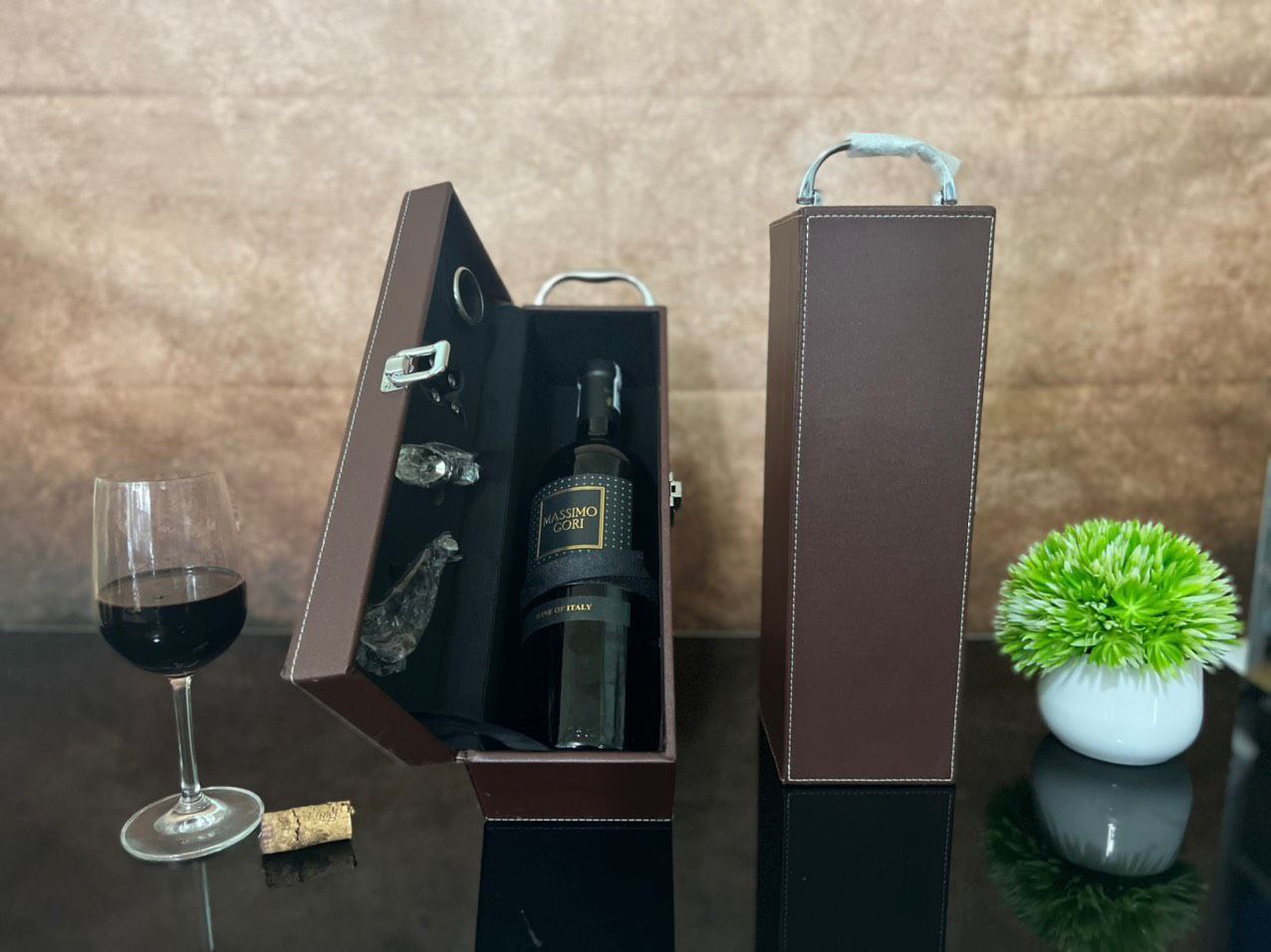 Thông tin chi tiết sản phẩm Hộp rượu da cao cấp 1 chai: