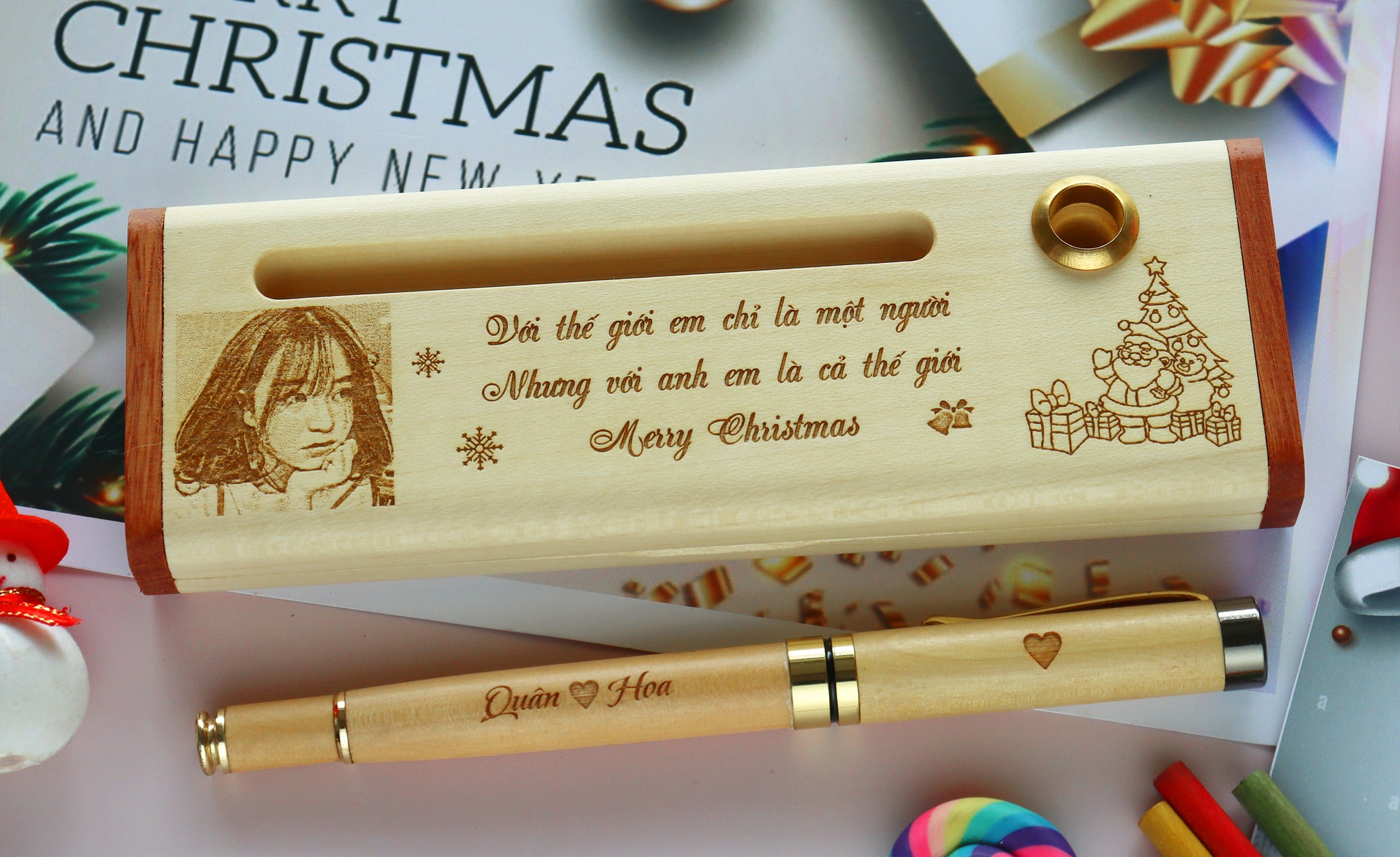 Giáng Sinh, thời điểm của sự ấm áp, niềm vui và sự chia sẻ, luôn đánh dấu một trong những khoảnh khắc đặc biệt nhất trong năm. Là dịp để tặng quà và thể hiện tình cảm với những người thân yêu, bạn bè và đồng nghiệp, mỗi món quà đều trở thành một biểu hiện của tình yêu thương và sự quan tâm. Trong không khí rộn ràng của mùa lễ này, bút gỗ khắc tên đã trở thành lựa chọn phổ biến và độc đáo cho những ai muốn tạo dấu ấn cá nhân trong món quà của mình.