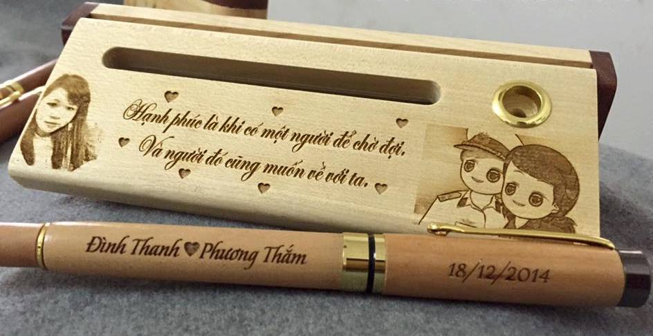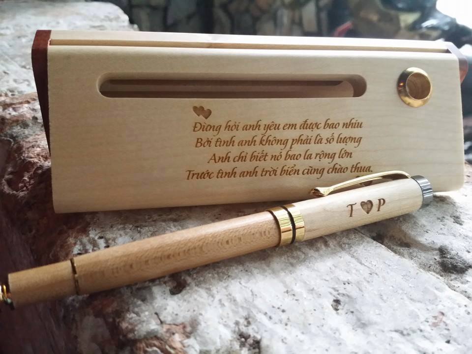 Bút gỗ khắc tên quà tặng tình yêu lứa đôi