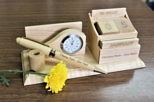 Thứ 4: Khay cắm bút kết hợp với Bút Gỗ khắc chữ sẽ là combo tuyệt vời.